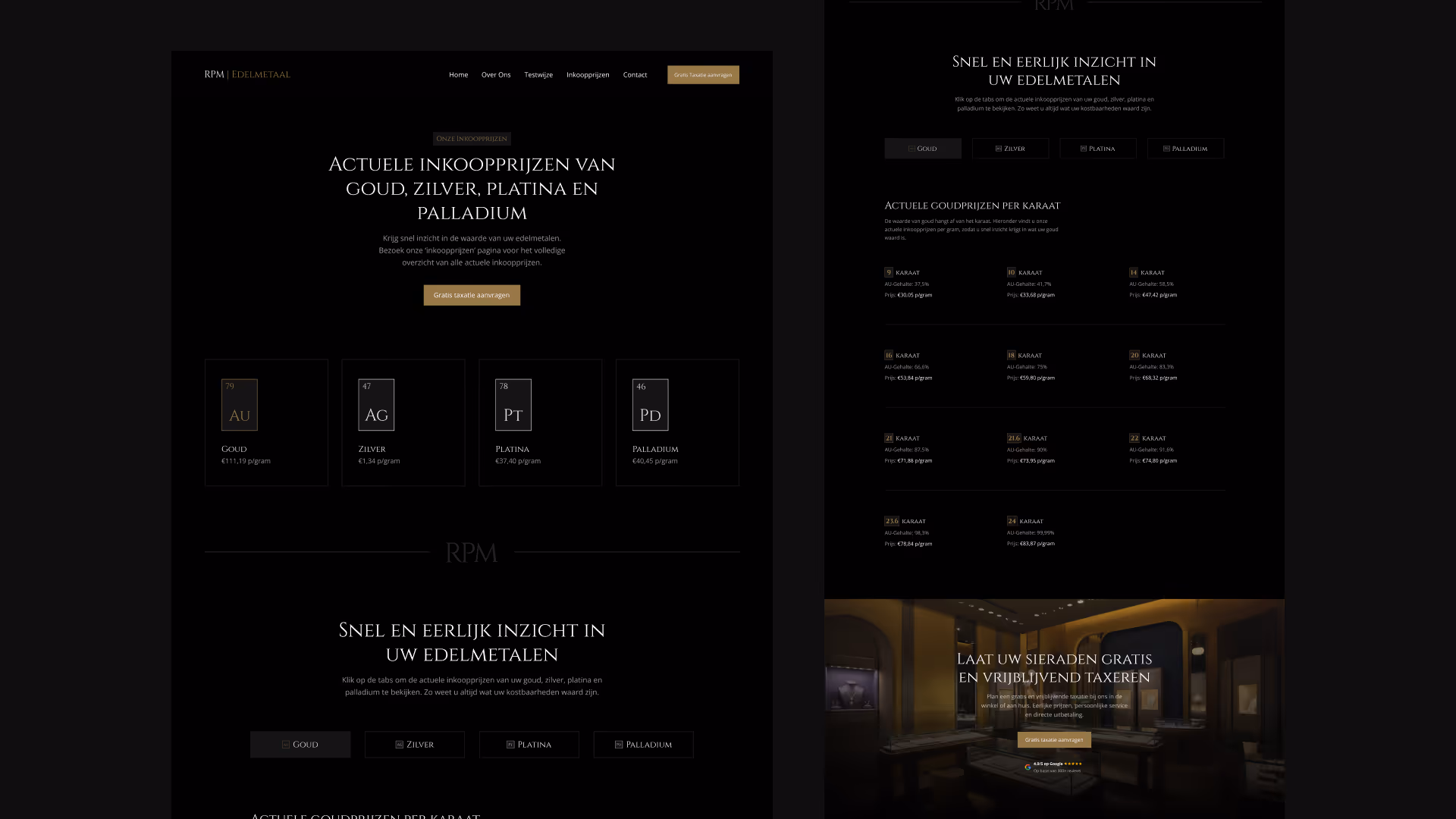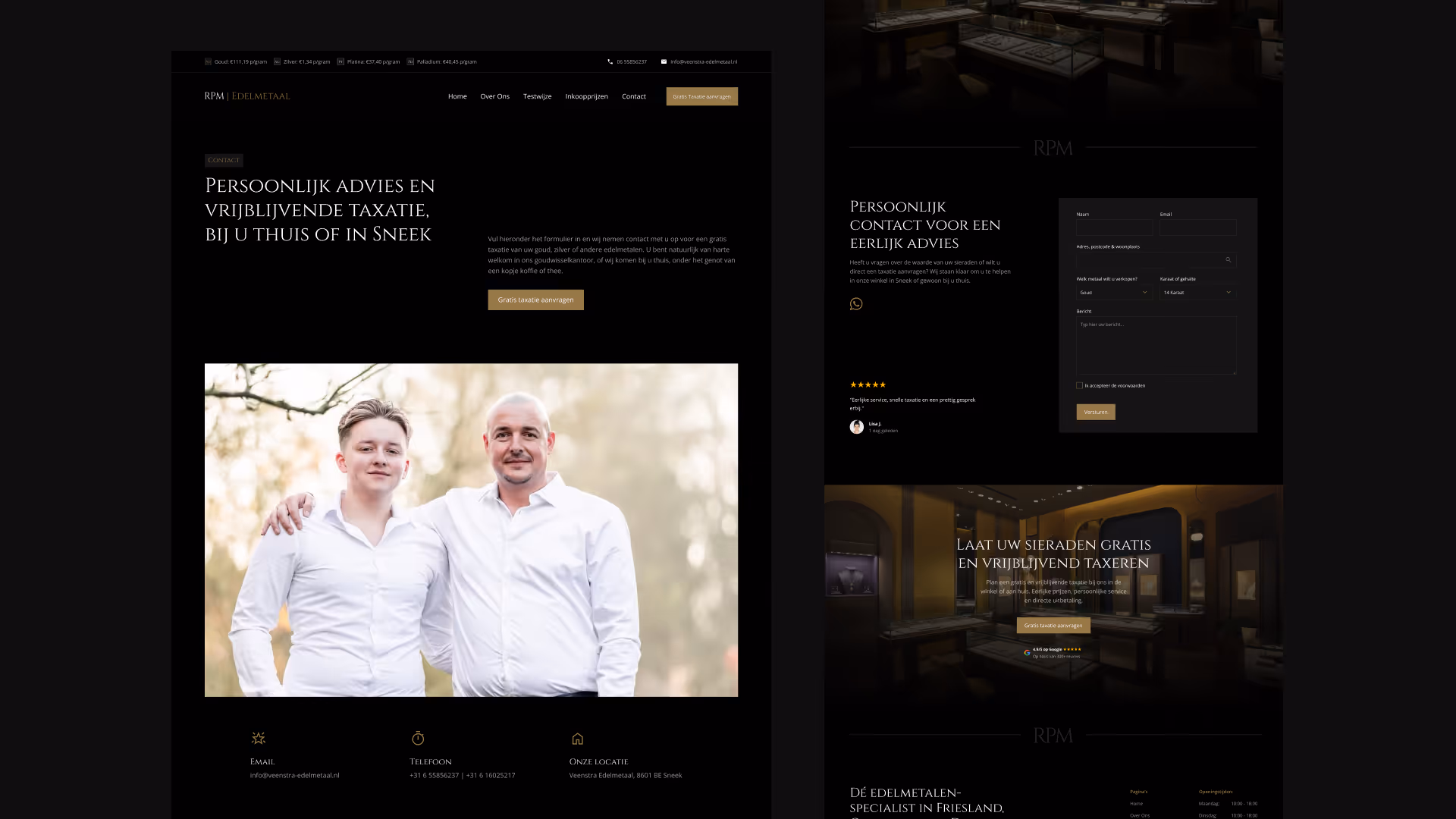 RPM Edelmetaal is the go-to specialist in the Northern Netherlands for anyone looking to value or trade gold, silver, and other precious metals.They offer professional evaluations and expert advice across Friesland, Groningen, and Drenthe. For this project I partnered up with Flits Digital who handled the development, while I focused on the design and integration of the branding.